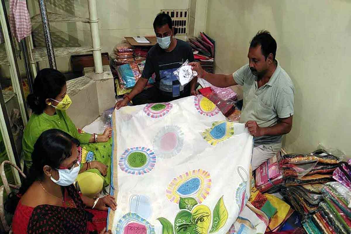 সুদীপ দাস, ৪ অক্টোবর:- পূজোর ফ্যাশানে রাজ্য সরকারের প্রকল্প এবার নজর কাড়ছে আপামর বাঙালির। হাতে মাত্র কটা দিন দোড়গোড়ায় বাঙালির শ্রেষ্ঠ উৎসব দূর্গা পূজো। বিগত বছরের ন্যায় করোনার কারণে আর্থ সামাজিক পরিস্থিতি বেশ খারাপ হলেও বাঙালি সর্বদাই সাধ্যের মধ্যে সাধপূরণে প্রথম সারিতে অবস্থান করে। পাশাপাশি পুরোনোর মাঝে নতুনকে নতুন করে সৃজন করতে কিংবা খুঁজে নিতে বাঙালির বিকল্প মেলা ভার। সেই রীতি বজায় রেখেই গতবারের ন্যায় এবারেও বর্তমান পরিস্থিতি ও দিনকালের কথা মাথায় রেখে তার পরিস্ফুন মিললো শাড়িতে।