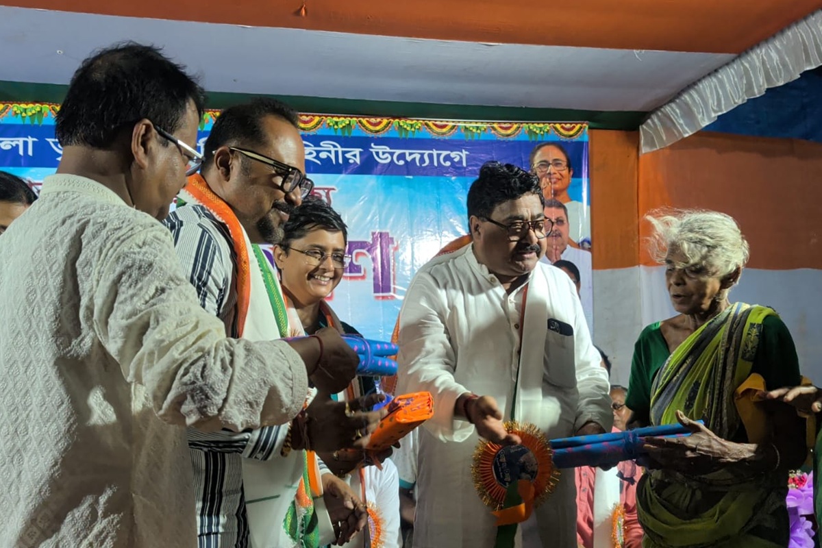 ব্যবস্থাপনায় ছিলেন স্থানীয় পুর সদস্য রাজু পারুই। আজকের অনুষ্ঠান সম্বন্ধে বলতে গিয়ে সুবীরবাবু জানান প্রতিবছর পুজোর আগে আমরা কিছু মানুষের হাতে নুতন বস্ত্র তুলে দিই, এবারও আমরা এই অনুষ্ঠান করলাম, আমরা মনে করি পূজোর আনন্দ যদি আমরা সকলে মিলে ভাগ করে নিই সেইটাই হবে আমাদের সার্থকতা, কারণ আমাদের নেত্রী মমতা বন্দ্যোপাধ্যায় আমাদের এই শিক্ষাই দিয়েছেন।