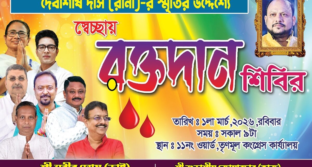 হুগলি, ১ মার্চ:- প্রতি বছর মতো এবছরও হুগলি জেলার অত্যন্ত জনপ্রিয় তৃণমূল নেতা স্বর্গীয় পৌরসদস্য মাননীয় দেবাশীষ দাস (রানা) স্মৃতির উদ্দেশ্যে জেলা তৃণমূল জয় হিন্দ বাহিনীর সভাপতি তথা পৌরপ্রধান পারিষদ মাননীয় সুবীর ঘোষ (ভাই) ও পৌরসদস্য শুভাশীষ জোয়ারদারের (কাজু) ব্যবস্থাপনায় অনুষ্ঠিত হলো এক মেগা স্বাস্থ্য শিবিরের সকাল থেকে বহু মানুষ এই শিবিরে এসে তাদের স্বাস্থ্য পরীক্ষা করান, অভিজ্ঞ চিকিৎসক মন্ডলী তাদের স্বাস্থ্য পরীক্ষা করে প্রয়োজনীয় ওষুধ সহ রোগীদের পরামর্শ দেন, এর সঙ্গে সঙ্গে এখানে অনুষ্ঠিত হয়েছিল স্বেচ্ছায় রক্তদান শিবিরেও গ্রীষ্ম পড়ার সাথে সাথে এই সময় রক্তের অভাব দেখা দেয় সেই কথা মাথায় রেখে উদ্যোক্তারা এই আয়োজন করেন।
