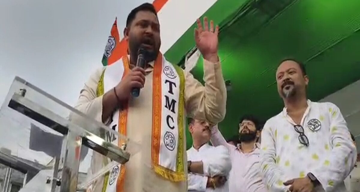 হুগলি, ২৬ এপ্রিল:- চাপদানির তৃণমূল কংগ্রেস প্রার্থী অরিন্দম গুইনের সমর্থনে সভা করলেন বিহারের প্রাক্তন উপ মুখ্যমন্ত্রী তেজস্বী যাদব। রবিবার চাপদানি পুরসভার ৫ নম্বর ওয়ার্ডের অন্তর্গত জোড়া মন্দির ময়দানে আয়োজিত সভায় একযোগে বিজেপিকে আক্রমণ করেন তেজস্বী। বলেন, বিদ্বেষ ছড়ানো, হিন্দু মুসলমানের মধ্যে ঝগড়া লাগানো বিজেপি সরকারের কাজ। পড়াশুনার ব্যবস্থা করা, ওষুধের ব্যবস্থা করা, রোজগারের ব্যবস্থা করা, সবাই মিলেমিশে থাকুক এটা সরকারের কাজ হওয়া উচিত। কিন্তু এদের কাজ হিন্দু মুসলমানের মধ্যে ঝগড়া বাধানো। মাছ খাওয়ার বিরোধিতা করছে। যেখানে নির্বাচন হচ্ছে সেখানে গিয়ে বলছে ঘুষ পেটিয়া চলে এসেছে।